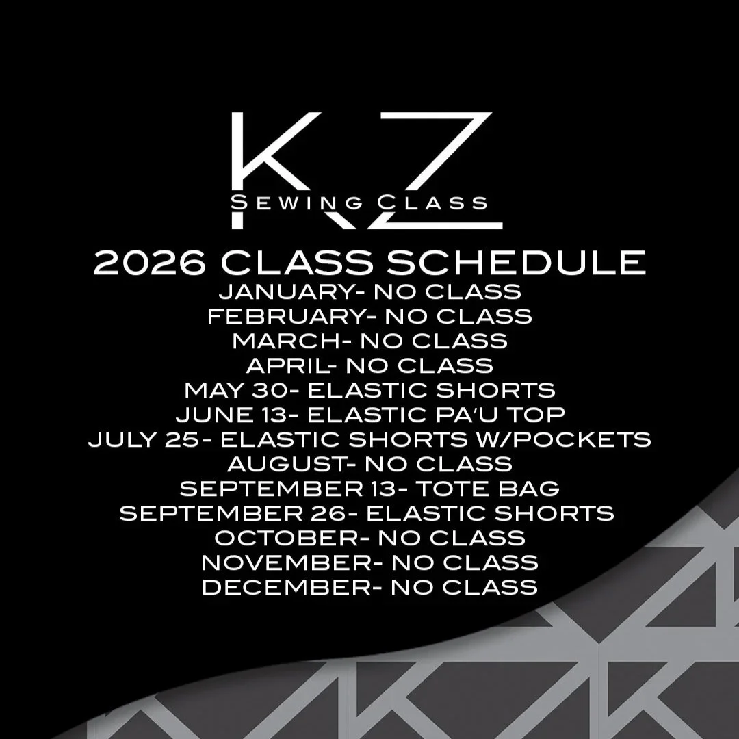 We are gearing up for our 3rd year of sewing classes and we are excited to see how many people are enjoying the art or sewing. We invite you to join one of our classes and learn from one of Hawaii’s leading designers Kini Zamora.